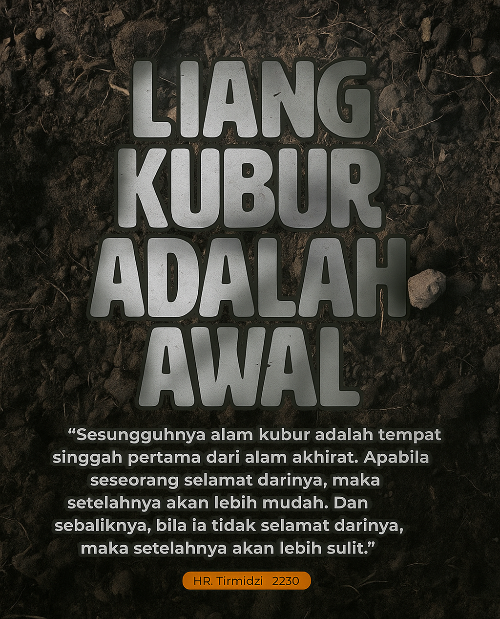 Poster ini menunjukkan bahwa alam kubur adalah awal perjalanan. Alam kubur menjadi persinggahan pertama menuju akhirat. Jika seseorang selamat darinya, perjalanan setelahnya lebih mudah. Namun bila tidak selamat, perjalanan selanjutnya akan lebih sulit.